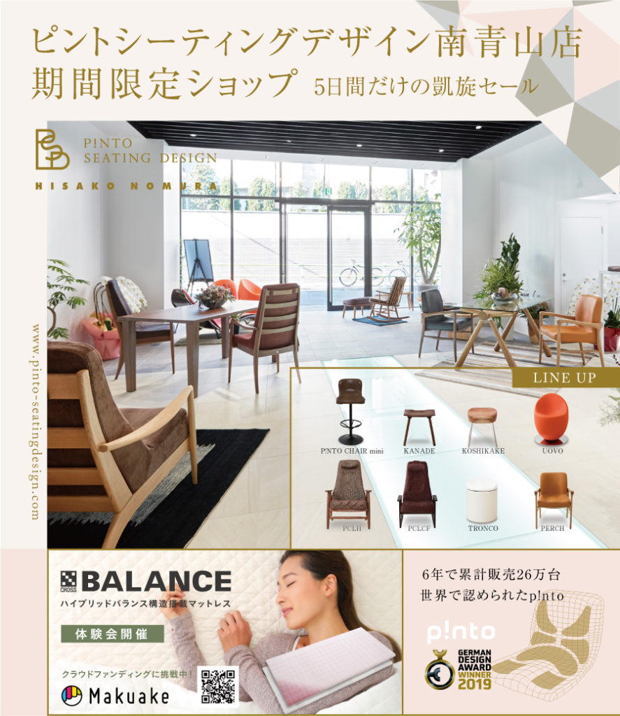 1月9日(木)~13日(祝)大丸ホワイトアベニュー(心斎橋)にてピントシーティングデザイン南青山店期間限定ショップを出店いたします。