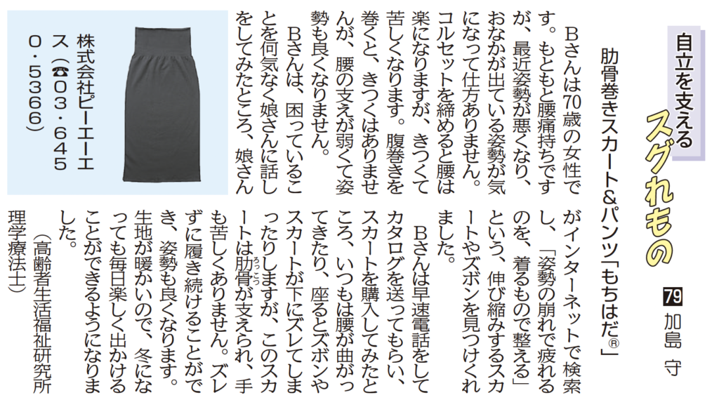 農業共済新聞11月3週号に「ピントウェア」が紹介されました。「自立を支えるスグレモノ」として実際にご利用いただいた方の体験談を踏まえ掲載をいただきました。